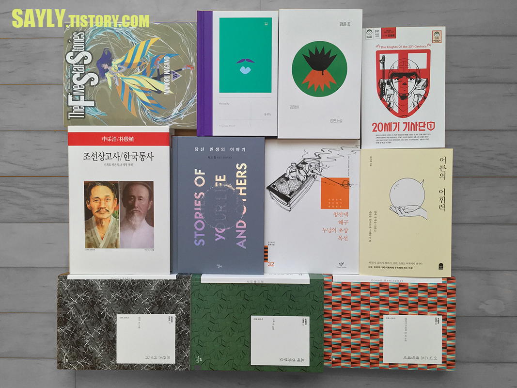 조선상고사와 한국통사, 소장용이지만 다시 읽고 있네요. 당신 인생의 이야기는 초판 개정판 겉표지가 마음에 안들어 언젠가는 리커버판이 나오겠지 하며 기다리다 이제야 구매. 창비의 한국 단편소설 32권은 한승원, 조정래 작가 모음집. 어른의 어휘력, 광고에 낚여서 구매 하루 만에 다 읽어버렸지만 기대만큼은 아니었네요. 그래도 실망하지는 않았습니다. 그냥 국어시험 예문 집 같은 느낌이었습니다.