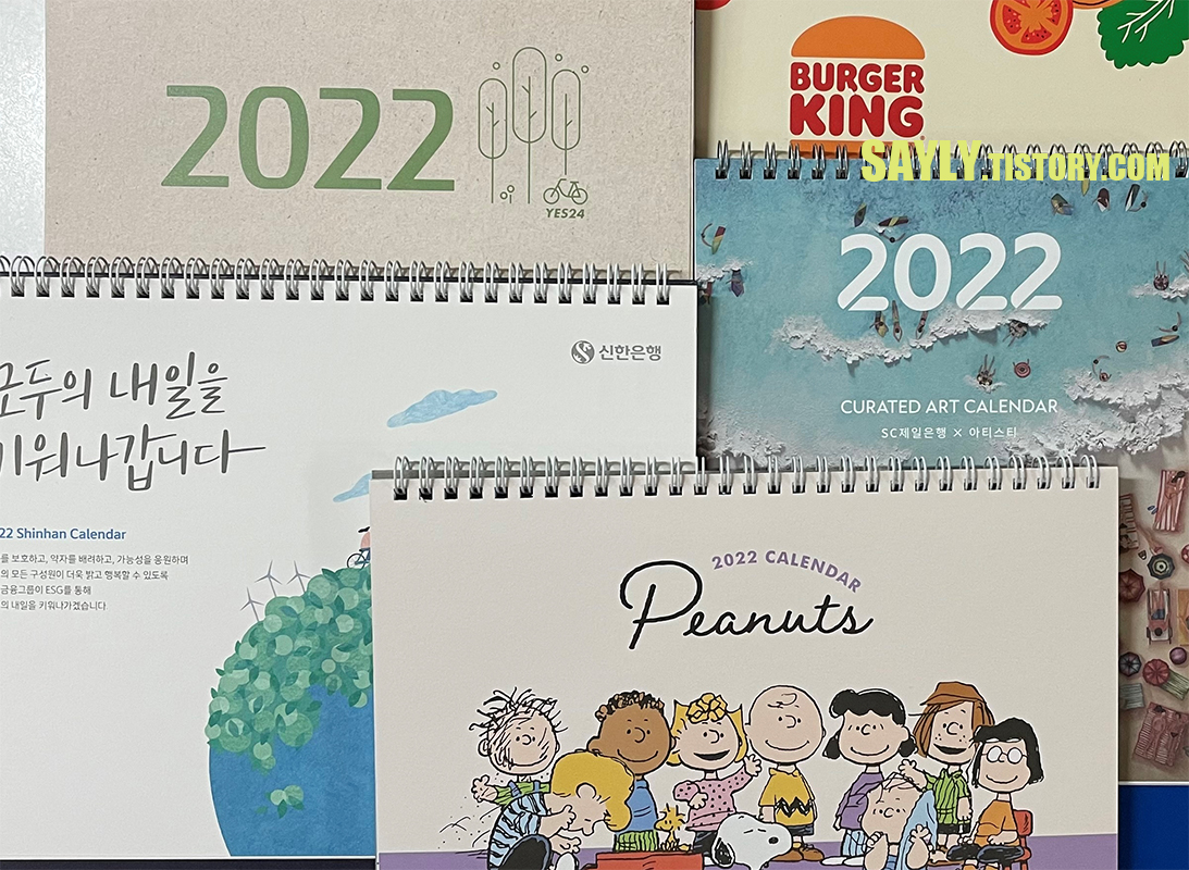 예스24와 알라딘의 달력은 진작에 있었지만 두 개만으로 좀 부족했었는데 지나가다 먹은 버거킹에서 갑자기 생기고 은행에서 직접 챙겨주고 아래 사진 다 찍고 나니깐 업체 달력이 갑자기 두 개나 더 생기는군요.